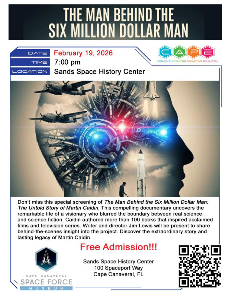 The CAPE Series offers fun, informative, and unique monthly events at the Sands Space History Center. CAPE stands for Creative Activities Promoting Education. It encompasses a wide array of events related in some way to the history of Cape Canaveral Space Force Station. All CAPE Series events are free and open to the public. Please feel free to contact us with any ideas you may have for future programs. Stay tuned to this site for updates on upcoming events. We look forward to seeing you soon. This is where history is launched!